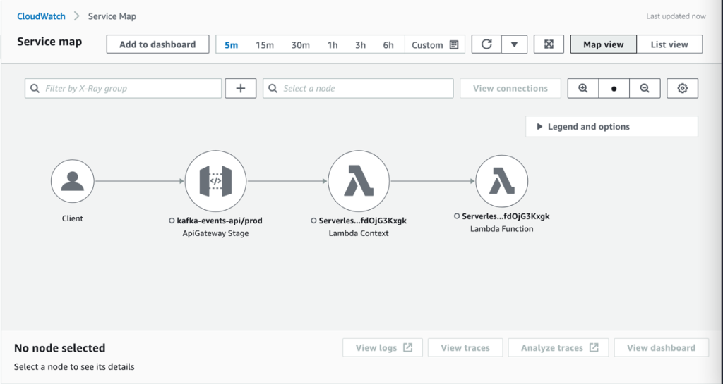 - Select a component to investigate (for example, the Lambda function where you deployed the Kafka producer).